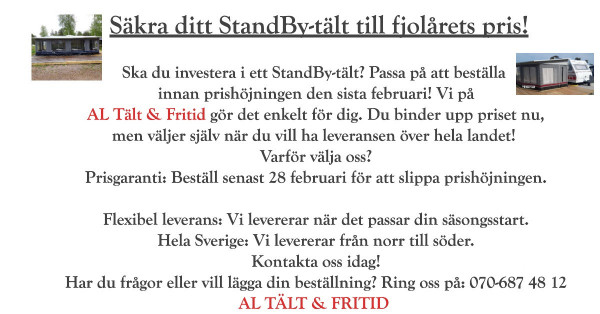 Gardinväv Detaljerna gör helheten. Våra gardiner är tillverkade av 100 % polyester i alla modeller. Alltså inga billiga bomullstyger som bleknar och blir skrynkliga. Våra polyestergardiner kan tvättas i 40 grader maskintvätt och behöver inte strykas. Dessutom väljer Du själv utan kostnad vilken gardin Du vill ha i alla modeller. StandBy-tälten har som standard gardiner av spinnfärgad acryl, samma fiber som i tältväggarna. |