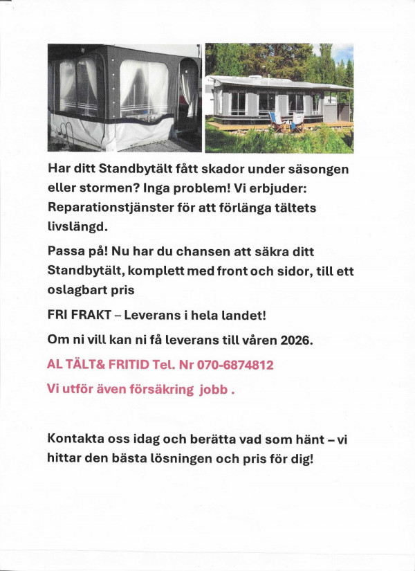 Takväv I våra tälttak använder vi en PVA-belagd polyesterväv. Denna har en plastbelagd utsida som garanterar skydd mot alla typer av väderlek. Fönsterfolie Vår fönsterfolie tillverkas i Japan av en av världens ledande tillverkare. Den uppfyller alla kvalitetskrav gällande hållbarhet och miljö. 100 % Acryl i tältväggarna Denna typ av väv går inte ens att jämföra med andra tyger. Färgen som håller: Väven har högsta färgäkthet. Den är spinnfärgad, dvs. färgad redan på fiberstadiet, inte som färdig väv. |